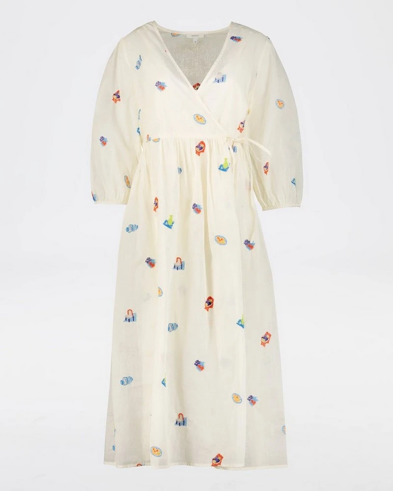 Easy to wear, the Millie Embroidered Wrap Dress is a beautiful summer piece. Featuring a delicate embroidery design throughout, the organdie dress is lightweight and perfect for the warm summer weather.Â