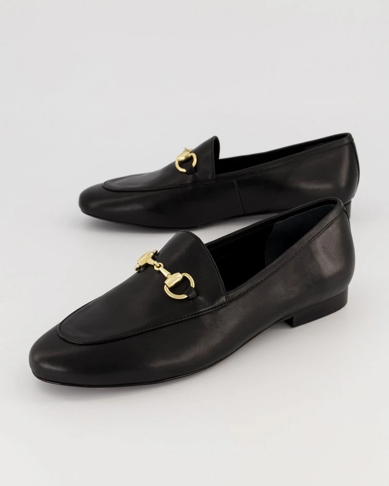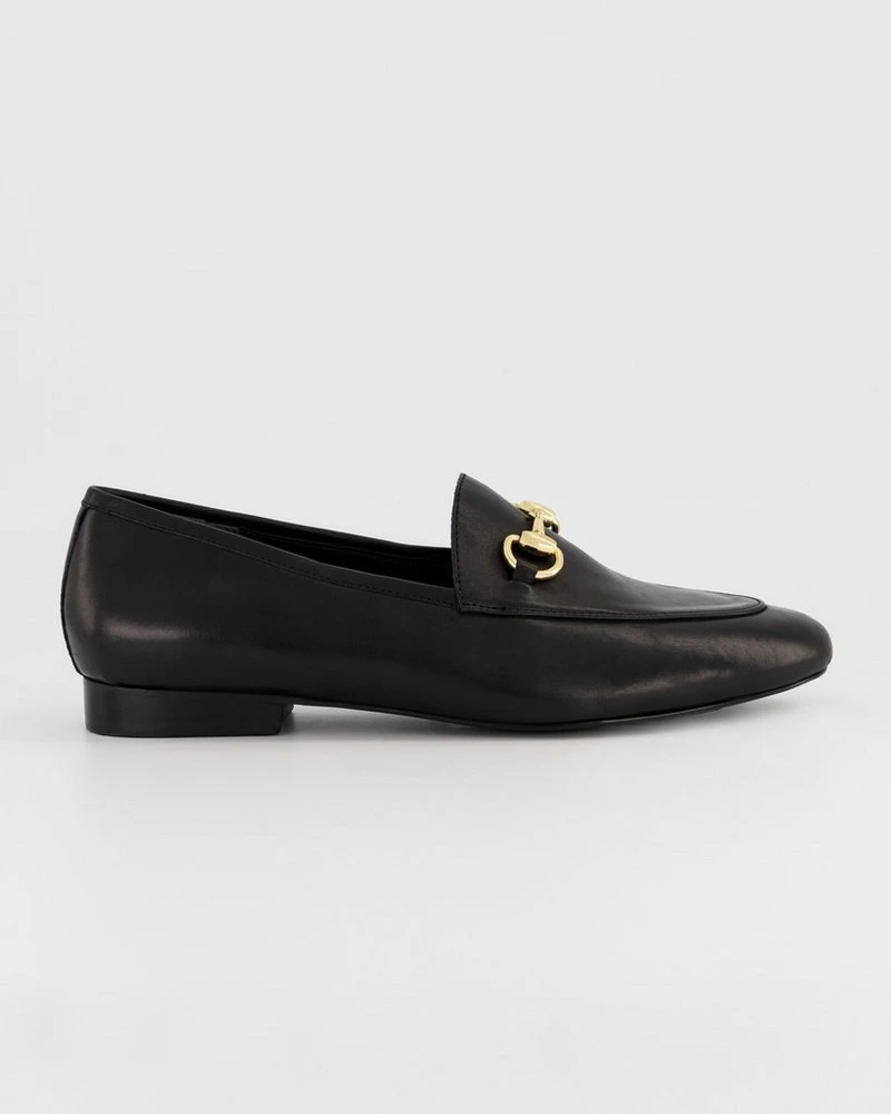 Sleek sophistication is just a step away, especially in the Mindy Leather Loafer. This classic slip-on features an almond toecap, a pronounced tongue and gold chain accents along the bridge. Pair these with your favourite denims for a chic yet laidback look.