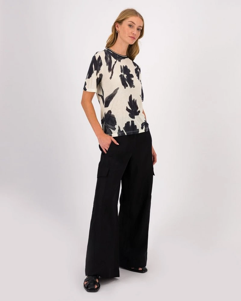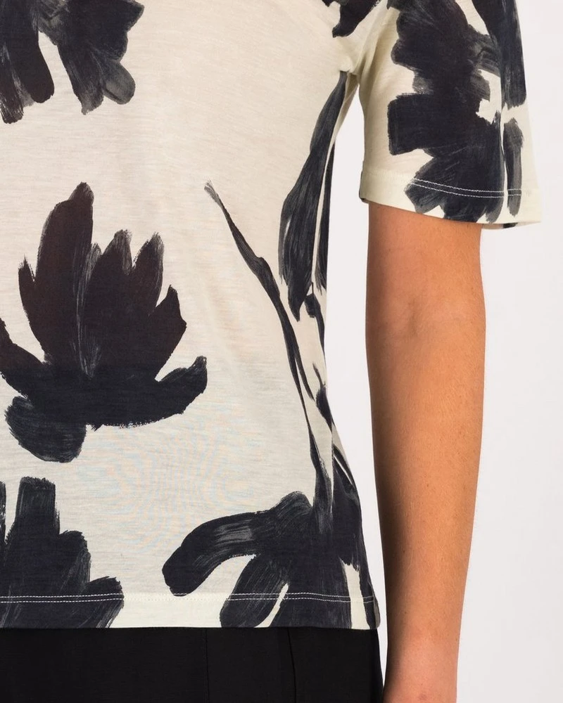 The basic tee got an upgrade with the Nala Printed Tee. Made with lyocell, the garment is lightweight and features a beautiful abstract print throughout.