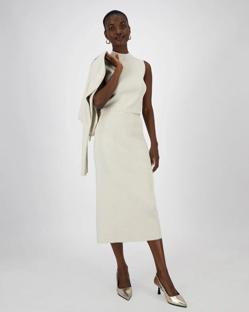 Add a new take to the classic vest with the Neo Knitted Vest. Made from a premium viscose blend fabric, it’s soft on the skin, easy to style and has a metallic thread throughout. The styling options are truly endless with this piece, but our suggestion is to pair it with the rest of the Neo Knitted Set for a chic knitted suit set.Â