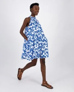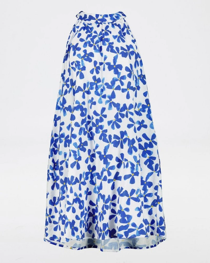 The flirty Neve Halterneck Dress is a must-have this season. Featuring a bold botanical print, the dress is constructed with viscose polyamide fabric that allows for maximum breathability. The halterneck style dress lands above the knee and includes ever-important pockets. Dress it up with a pair of heels or style it more casually with flat sandals.Â