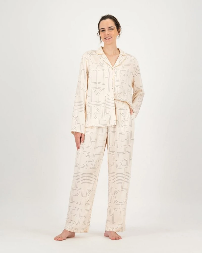 The Nikol Branded PJ Set is made from a soft and luxe fabric and features elegant and understated Poetry branding throughout.