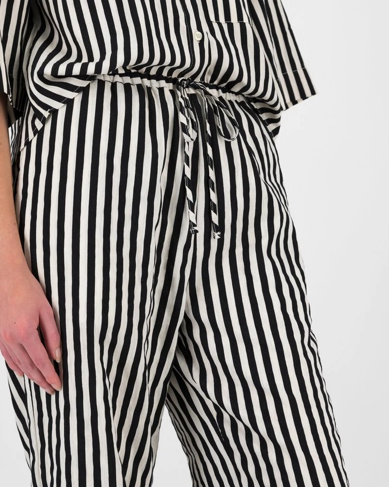 Lightweight and stylish, the Orchid Black and White Stripe pant is perfect for a laid-back look. Locally made from a comfortable cotton blend, the horizontal stripes give the illusion of impossibly long legs. Pair with the Orchid Black White StripeShirt for a perfect co-ord set.Â