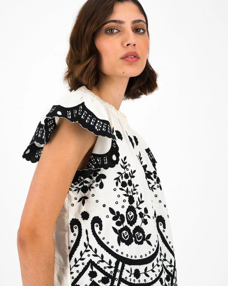 The Paris Embroidered Popover is an effortlessly stylish piece to add to your wardrobe. It’s made from 100% ethically sourced cotton and is uniquely embroidered with a stunning motif throughout.Â