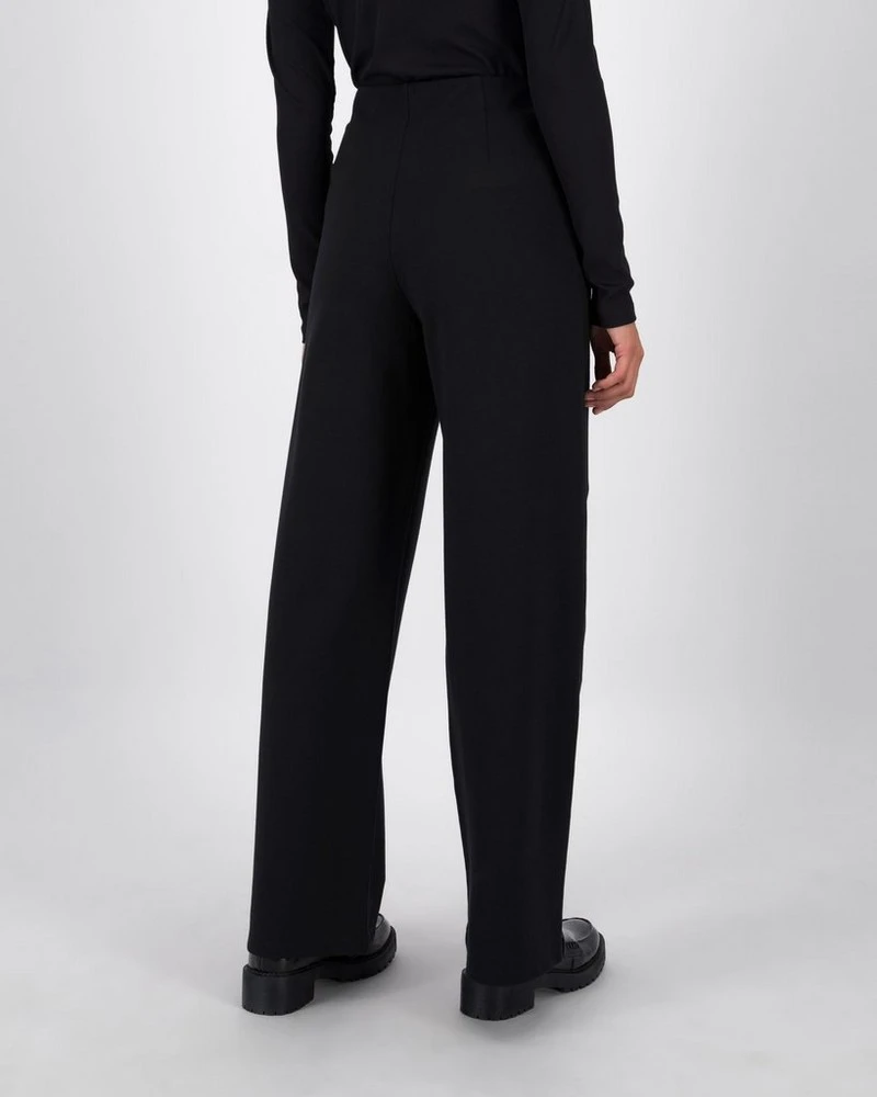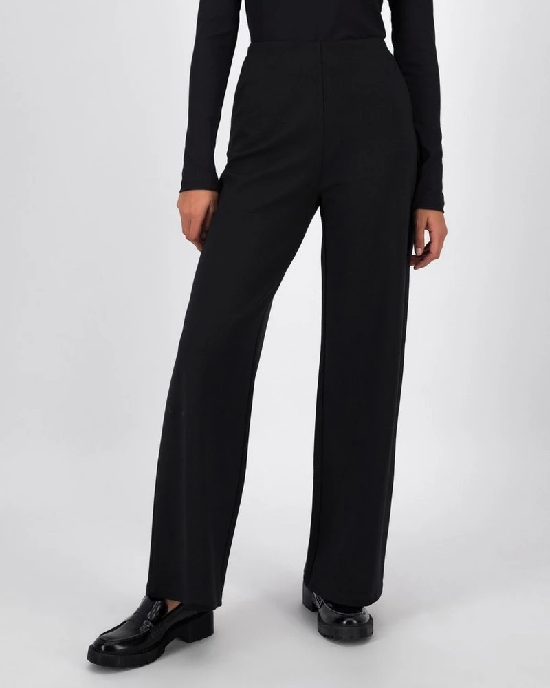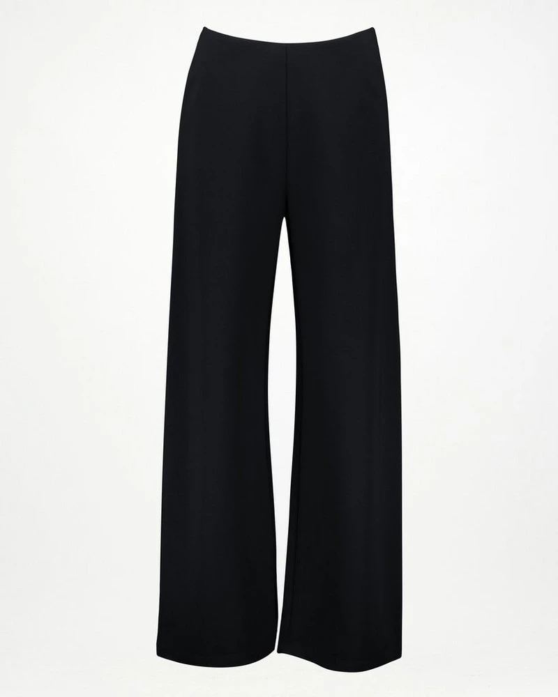 Comfort meets style in the Patty Wide Leg Ponte Pants. Made from a viscose blend, this pull-up pants features wide legs and the stylish silhouette of a formal pants with the comfort of sweats.Â