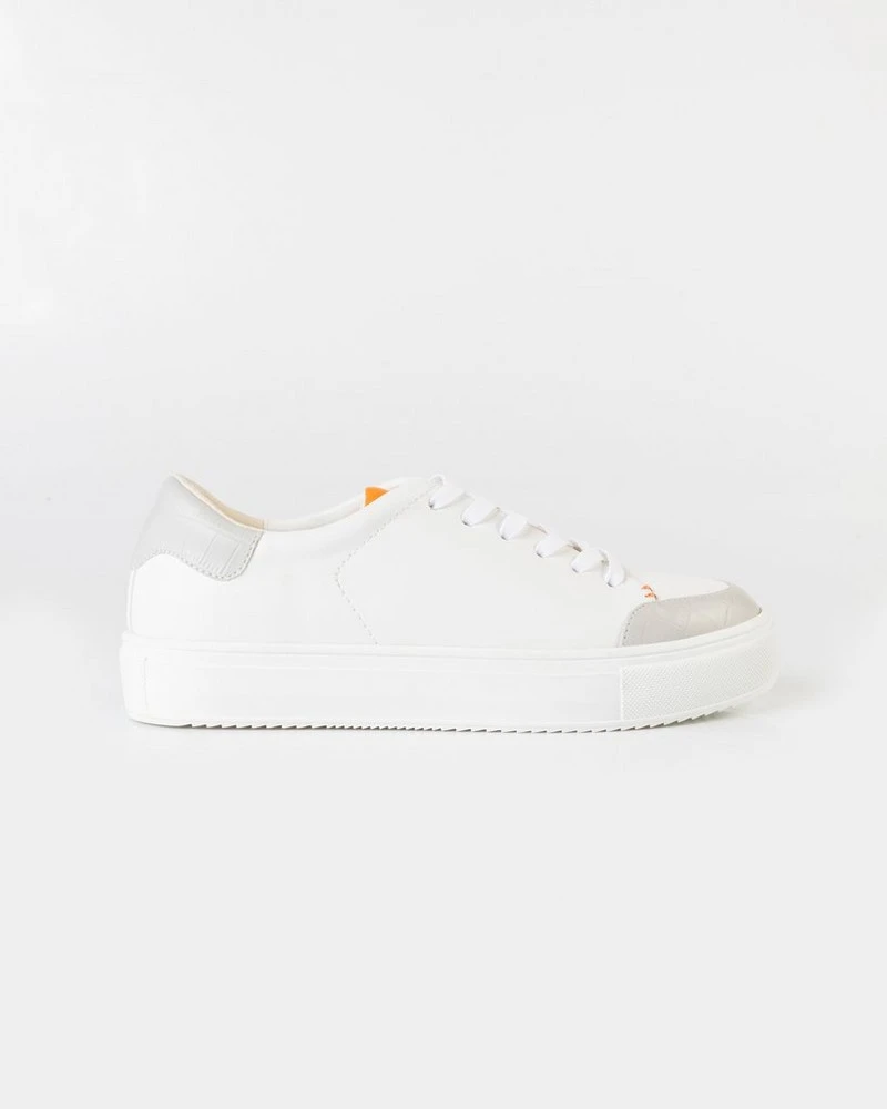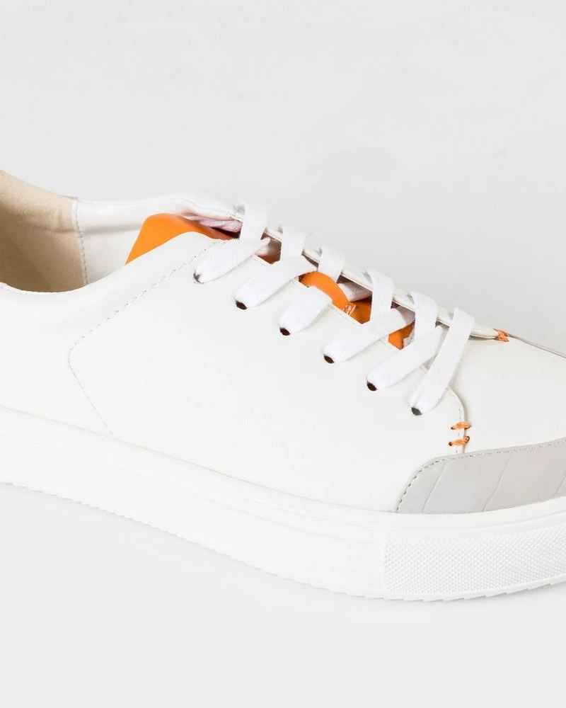 Look and feel super cool and stylish in the Rayna Sneaker. These classic sneakers feature a synthetic leather upper with snake embossed detail and a pop of orange on the tongue – perfect for a day out or Casual Friday in the office.