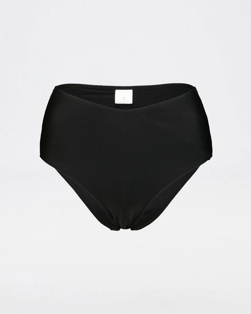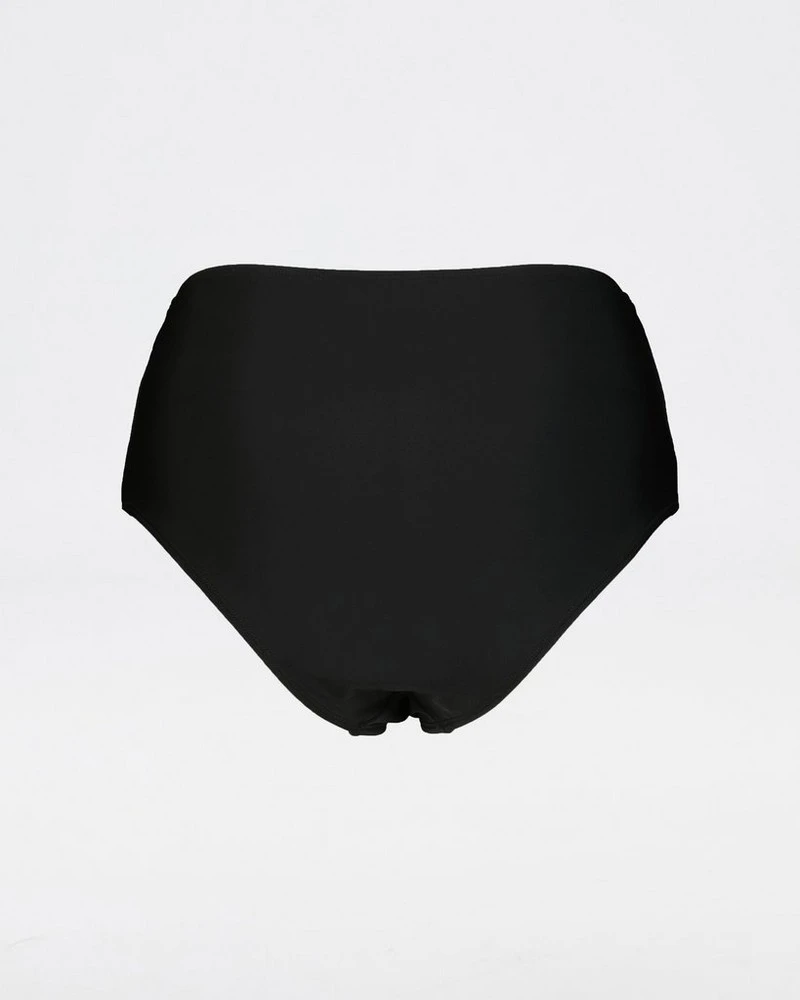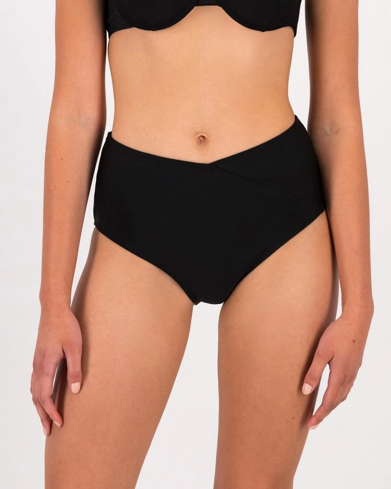 Make a splash this summer in the fun, flirty and feminine Rina Ruffle Bikini Bottoms. Locally made from recycled nylon in a classic black style, they feature a high-rise waist with flattering v-detailing.