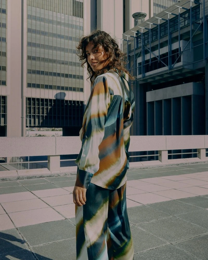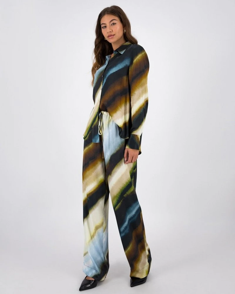 The Sandi Ombre Printed Soft Shirt is a worthwile addition to any wardrobe. Locally made from a comfortable viscose blend fabric, it features an abstract design throughout and can be worn as part of a matching set with the Sandi Ombre Printed Wide Leg Pant or with a comfy pair of jeans.Â