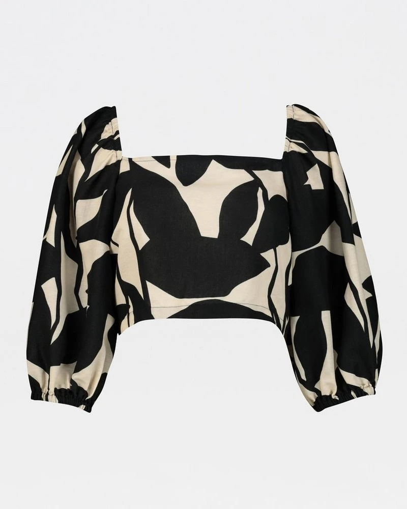 The locally manufactured Serene Printed Top is an idyllic addition to any closet. Made with a comfortable linen blend fabric, and featuring a beautiful design, this piece is truly one of a kind. The top also features a tie-back detail that adds a sophisticated touch to the piece.Â