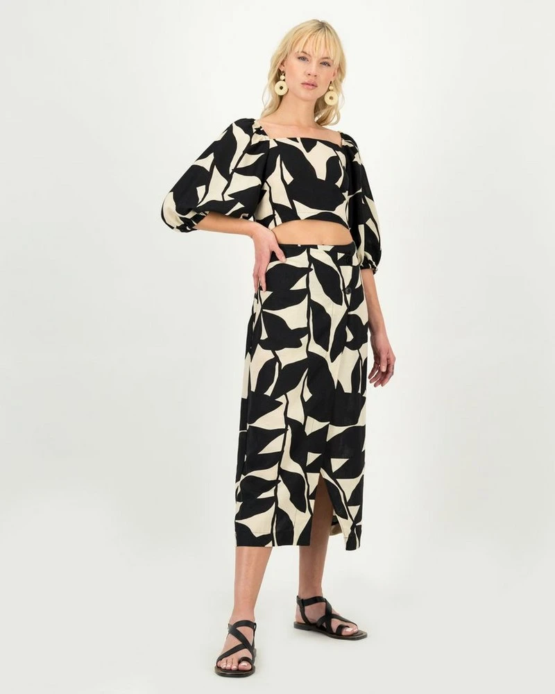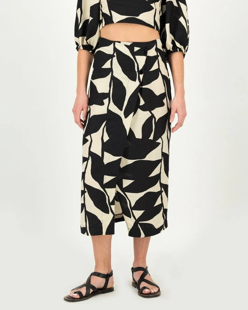 Stay cool in the Serene Printed Wrap Skirt. With a beautiful design throughout, this locally manufactured piece is a wonderful way to add some print to any wardrobe. It’s made from a linen blend fabric that works to keep you cool despite the warm weather.