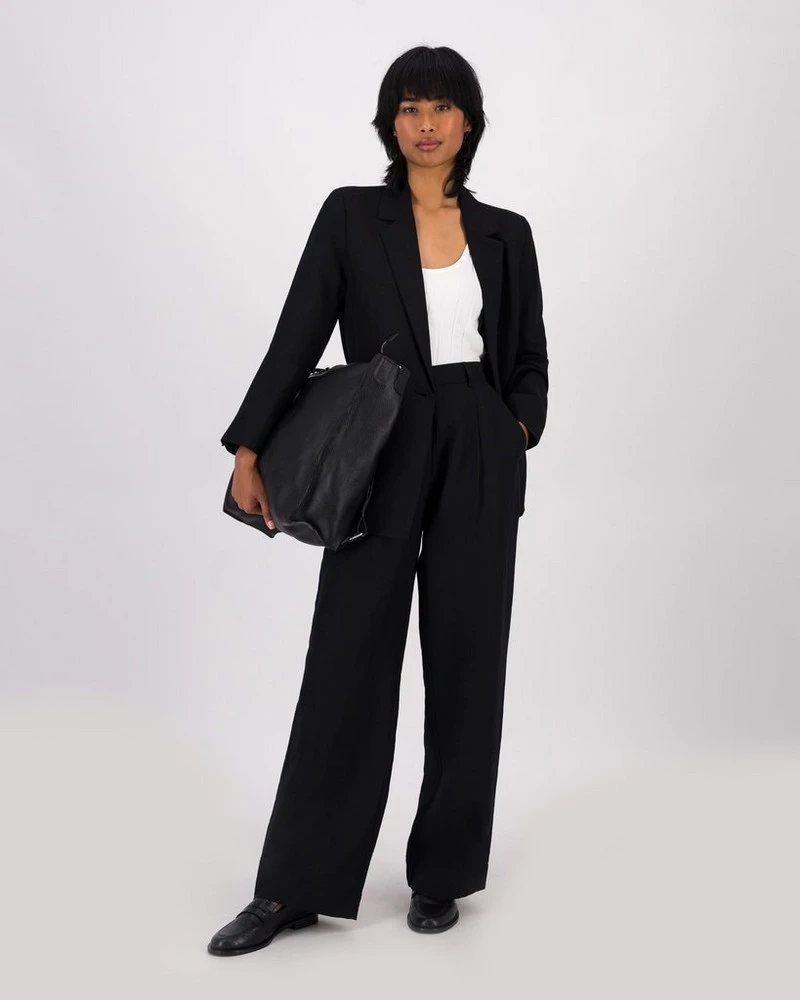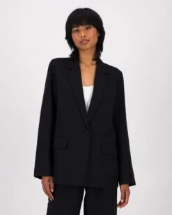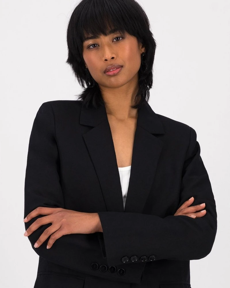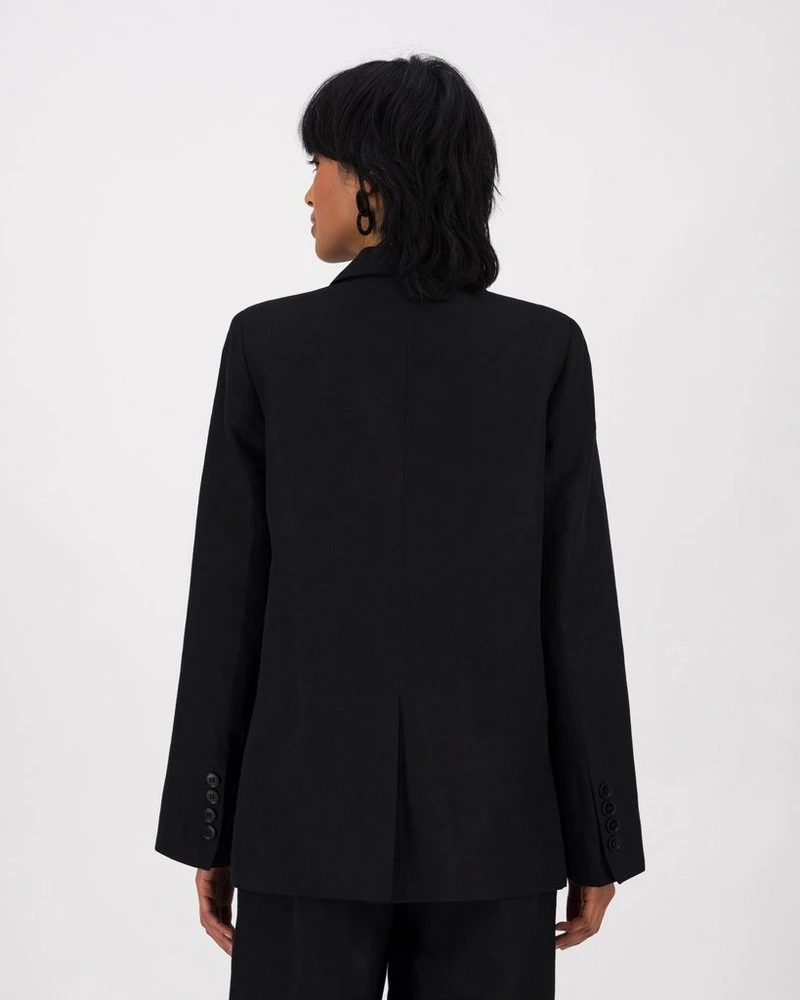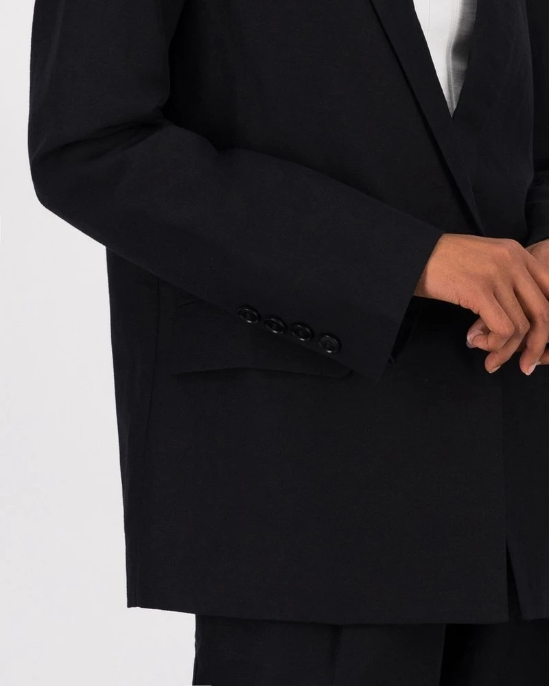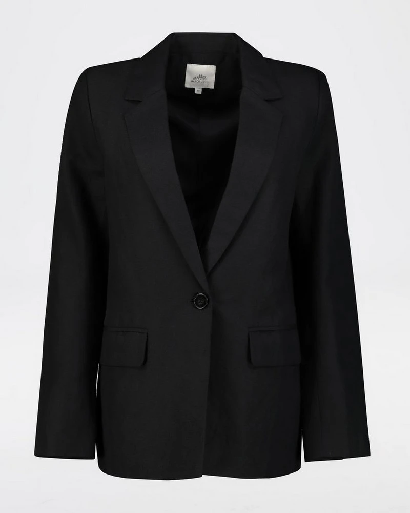 Look and feel like the power woman you are in the lightweight and flattering Shaei Blazer. Made from a linen blend, the regular fit blazer features a classic lapel collar with a single button closure, patch pockets with flaps, and long sleeves with buttoned cuffs.