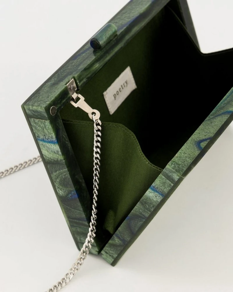 Step out in style with the Simone Resin Clutchbag. The vibrant, and colourful piece features a clip opening that opens to reveal a luxurious lining. It’s the perfect piece to style on a night out!