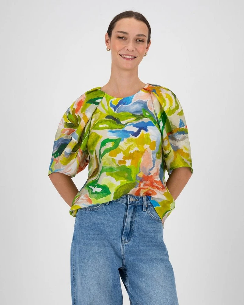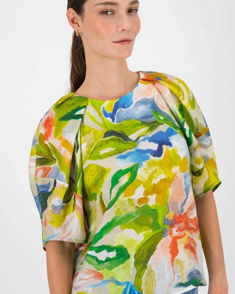 Step out in style with the Tigris Floral Blouse. Made from a lightweight tencel fabric, the delicate piece features a bold floral design throughout, with interesting sleeves that can be styled for any occasion.