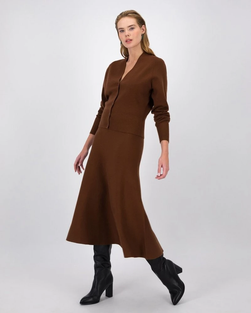 Perfect for cooler weather, the Valeria Knitted Skirt is a stylish addition to your winter wardrobe. The comfy wool blend skirt features a flattering fit and can be worn alongside the matching Valeria Cardigan for a beautiful monochromatic look.Â