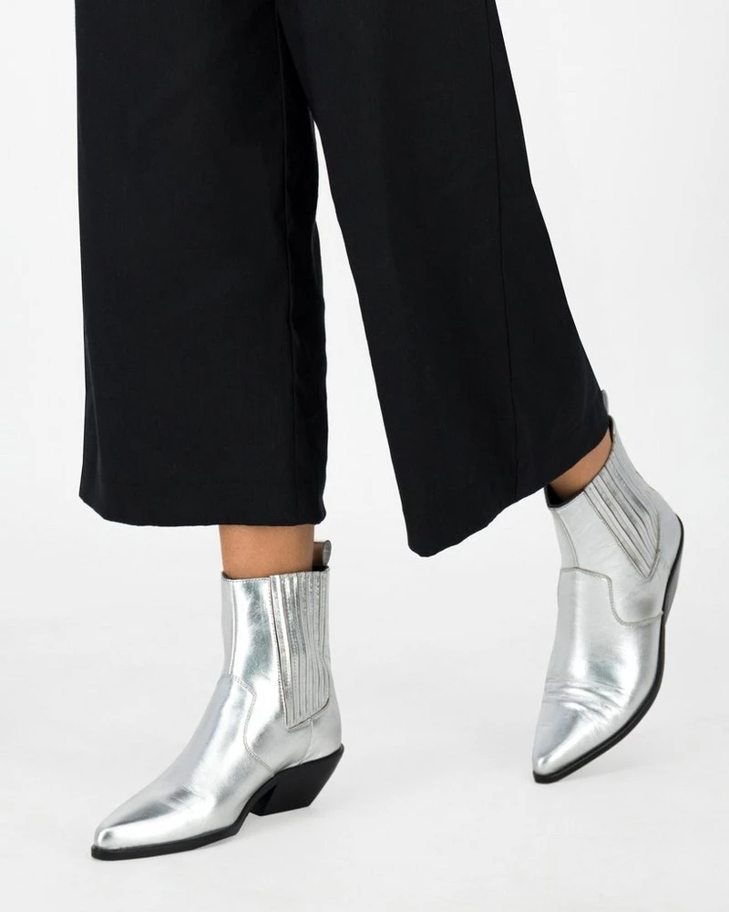 A chic take on a classic, the Valerie Western Boot is a timeless addition to any shoe collection. The sharp point and classic cowboy-style heel is a nod to the style inspiration of the piece.