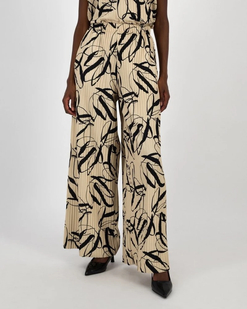 The Winni Printed Crinkle Pant is an easy-wearing two-tone printed pant that updates your winter wardrobe effortlessly. It’s a wide leg pant that has a comfortable elastic band for maximum comfort and style.Â